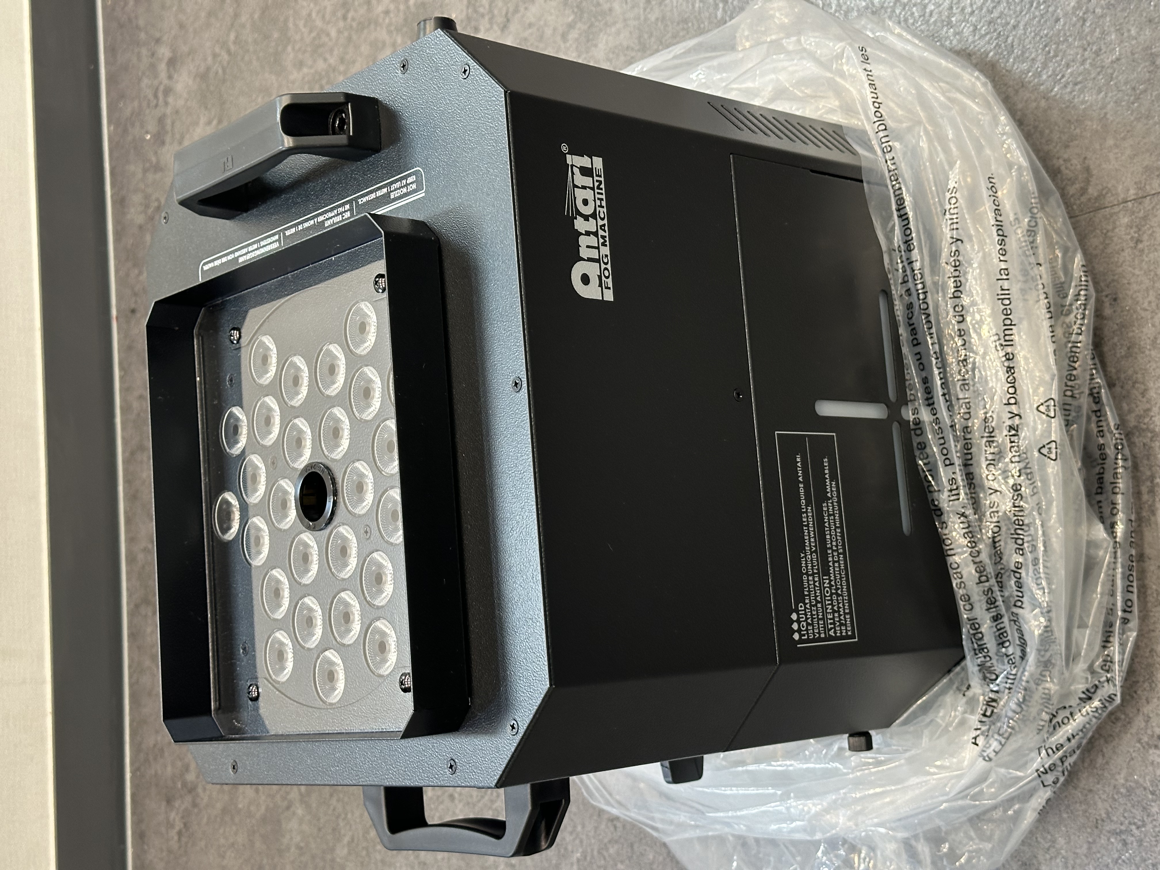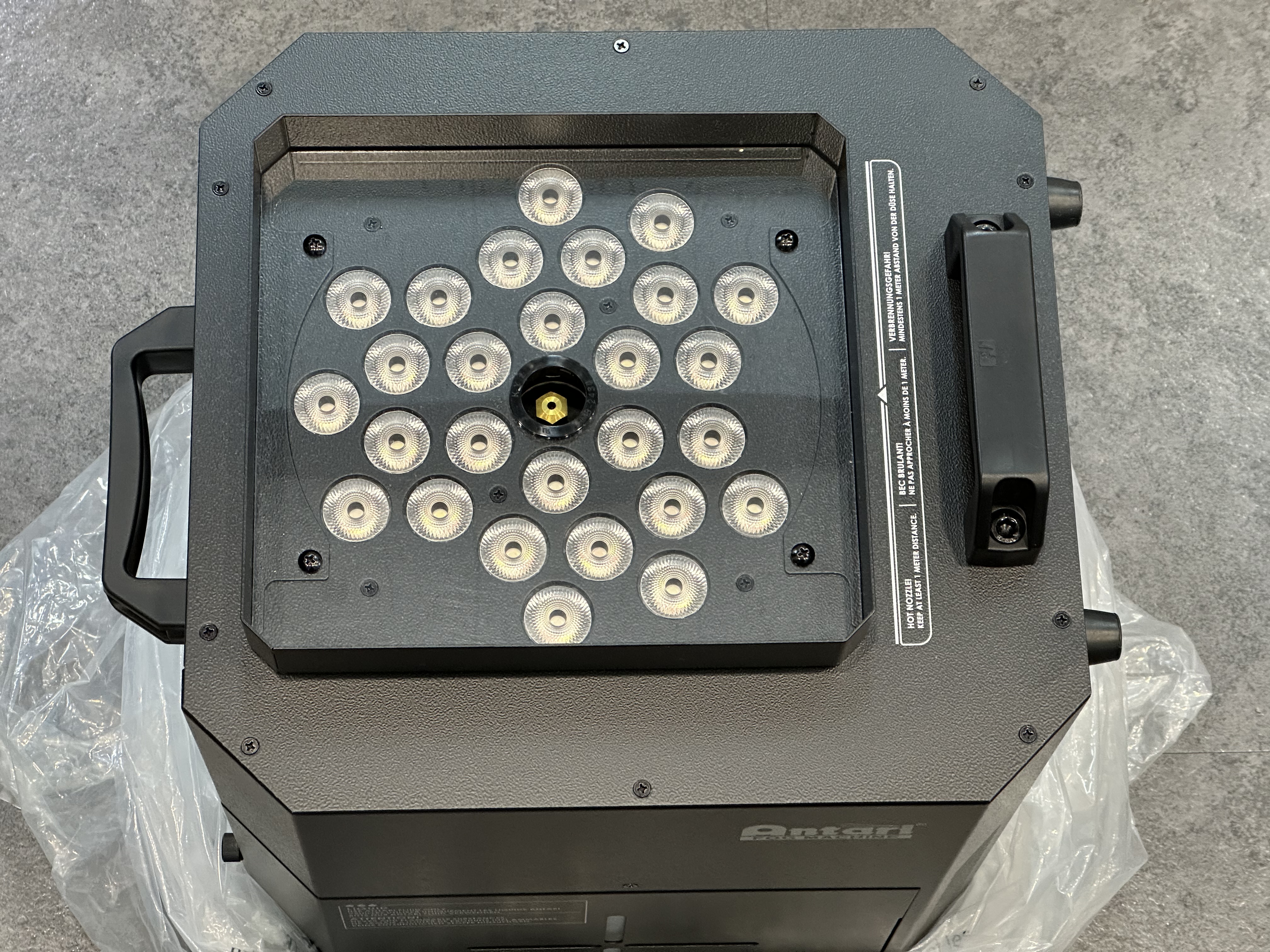 • 3회 시연용으로 사용. 상태A급으로 새제품과 차이없음.무상보증 구매일로부터 1년 보장.(구매 전 반드시 실사 사진 참고 후 구매 바랍니다) 25RGBAW LED 컬러 조명과 함께 강력한 CO2 포그를 분사합니다. 순간적으로 빠르게 10M 높이의 포그 기둥을 만듭니다.   빠른 속도와 높은 높이의 파워풀한 분사가 장점입니다.수직,수평 등의 방향에 관계없이 분사 가능(360도)합니다.