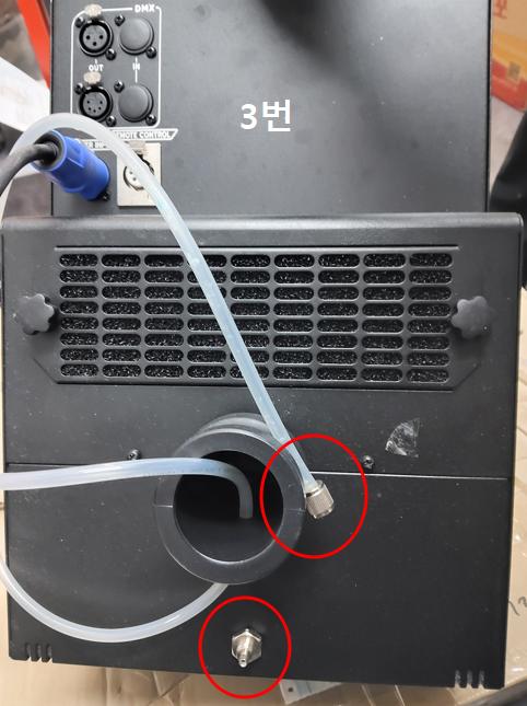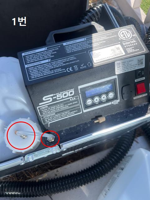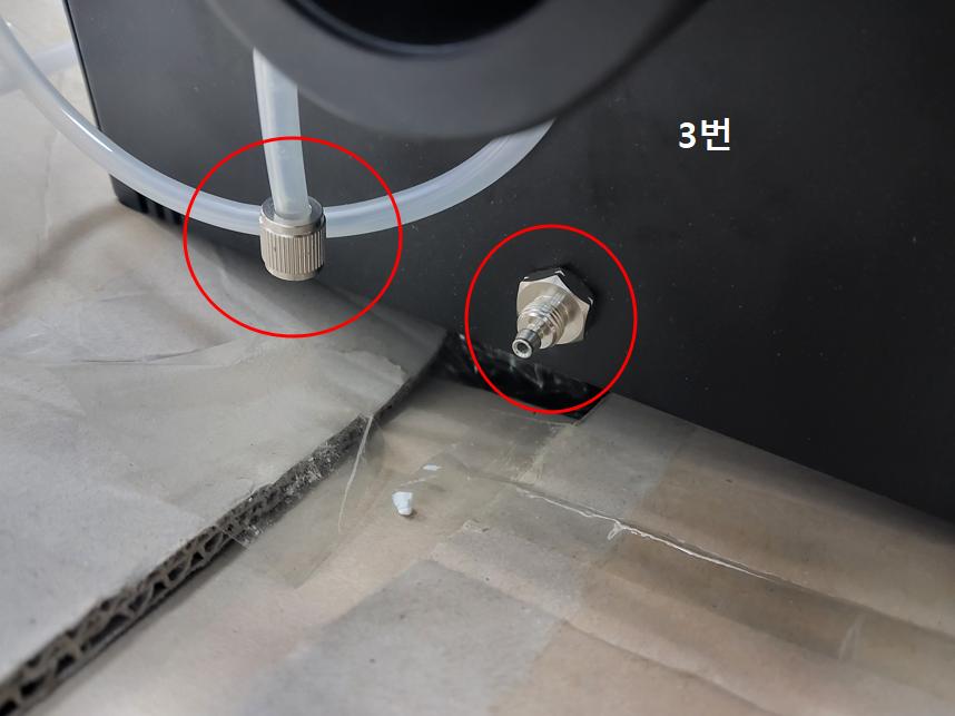 1. 먼저 용액 호스와 기기가 잘 연결되었는지 확인 바랍니다. (꾹 눌러서 체결 확인)